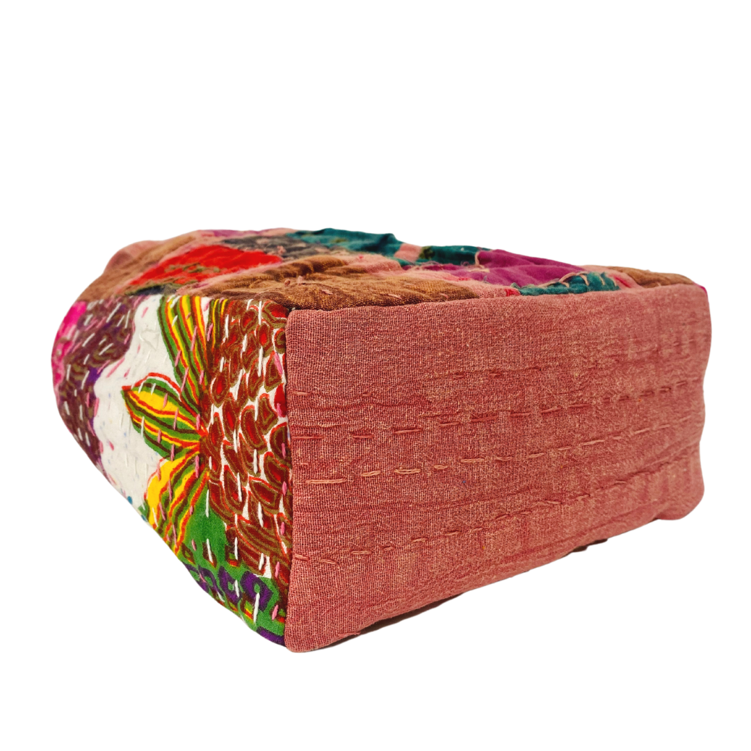 Constructed from handmade Kantha quilts imported from India, each tote is collaged together to be what is truly a one of a kind piece.