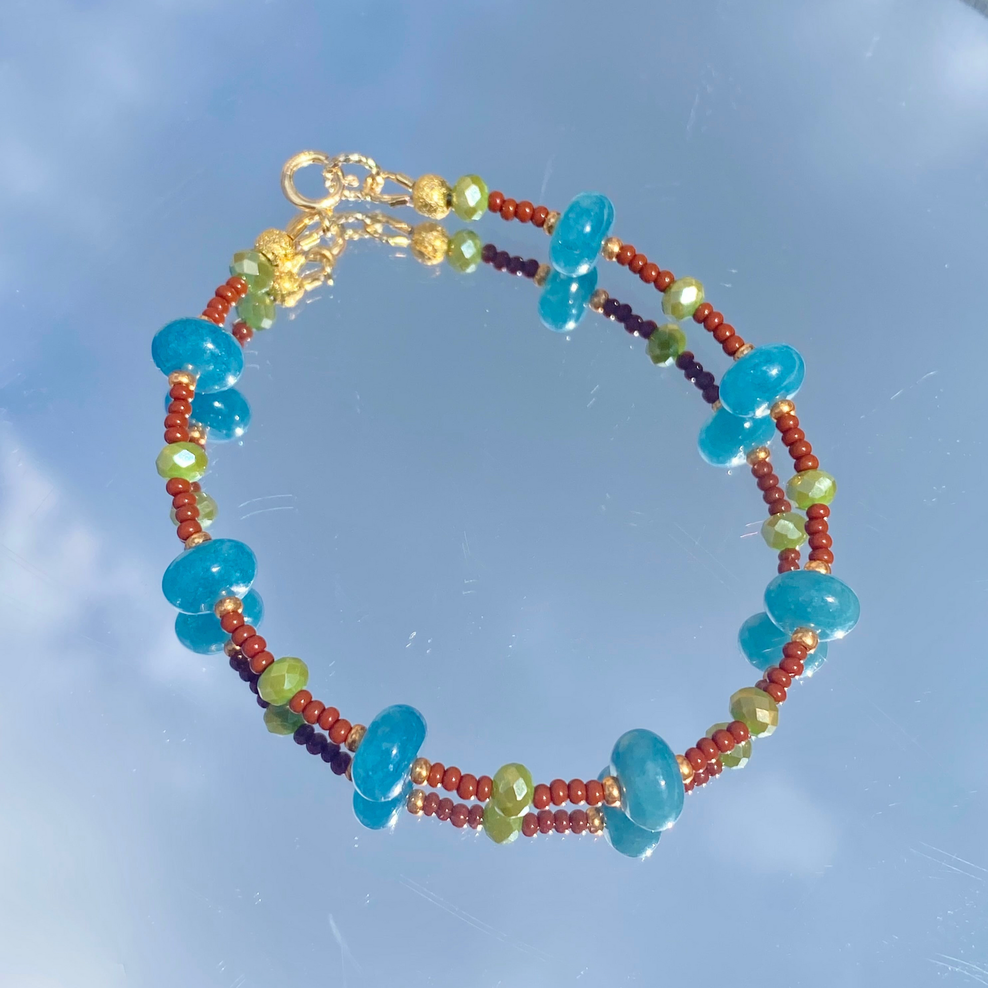 -Blue stone rondelle and glass beads