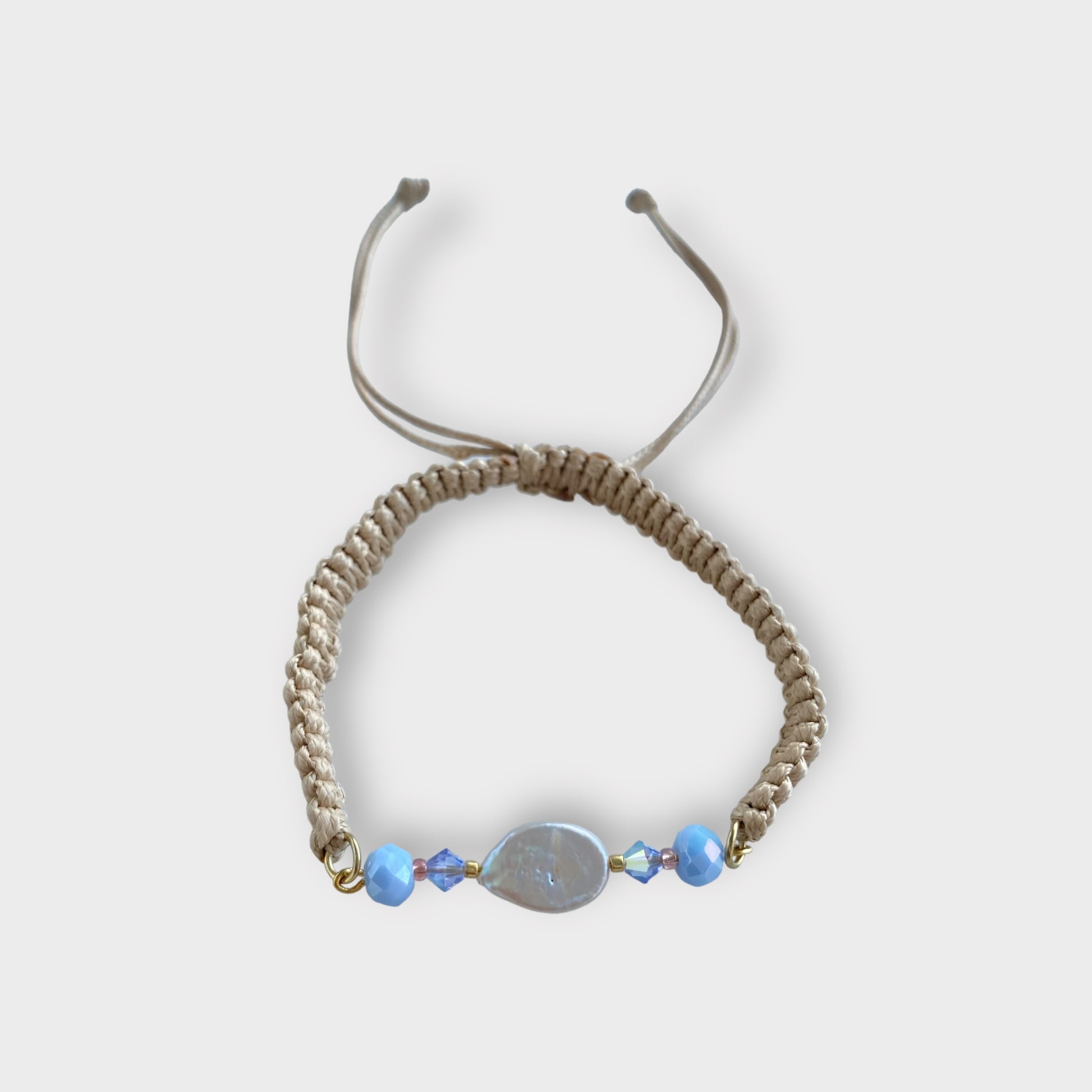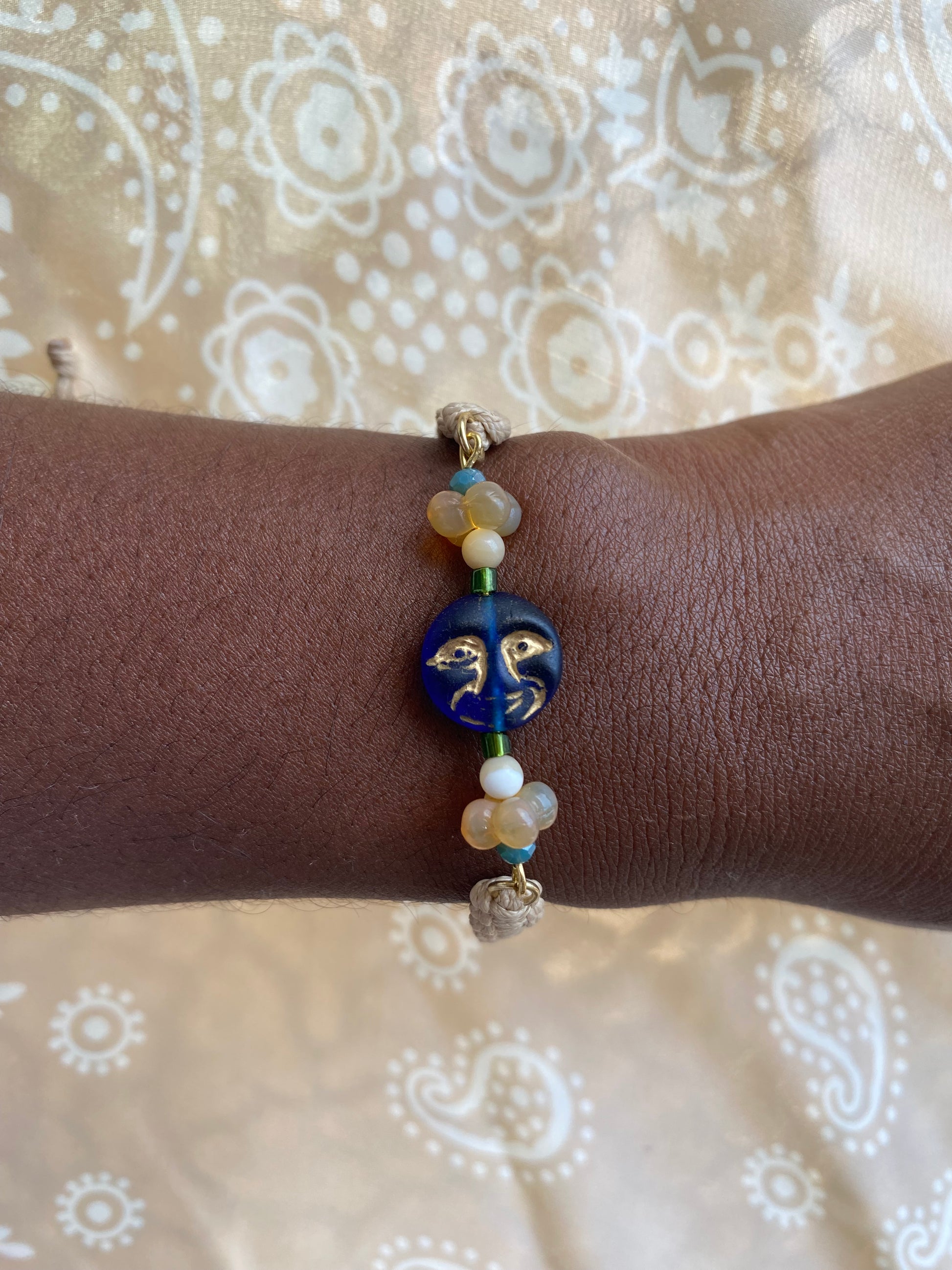 -Oval freshwater pearl with glass beads, or Blue moon face glass bead with white mother of pearls and vintage bauble beads
