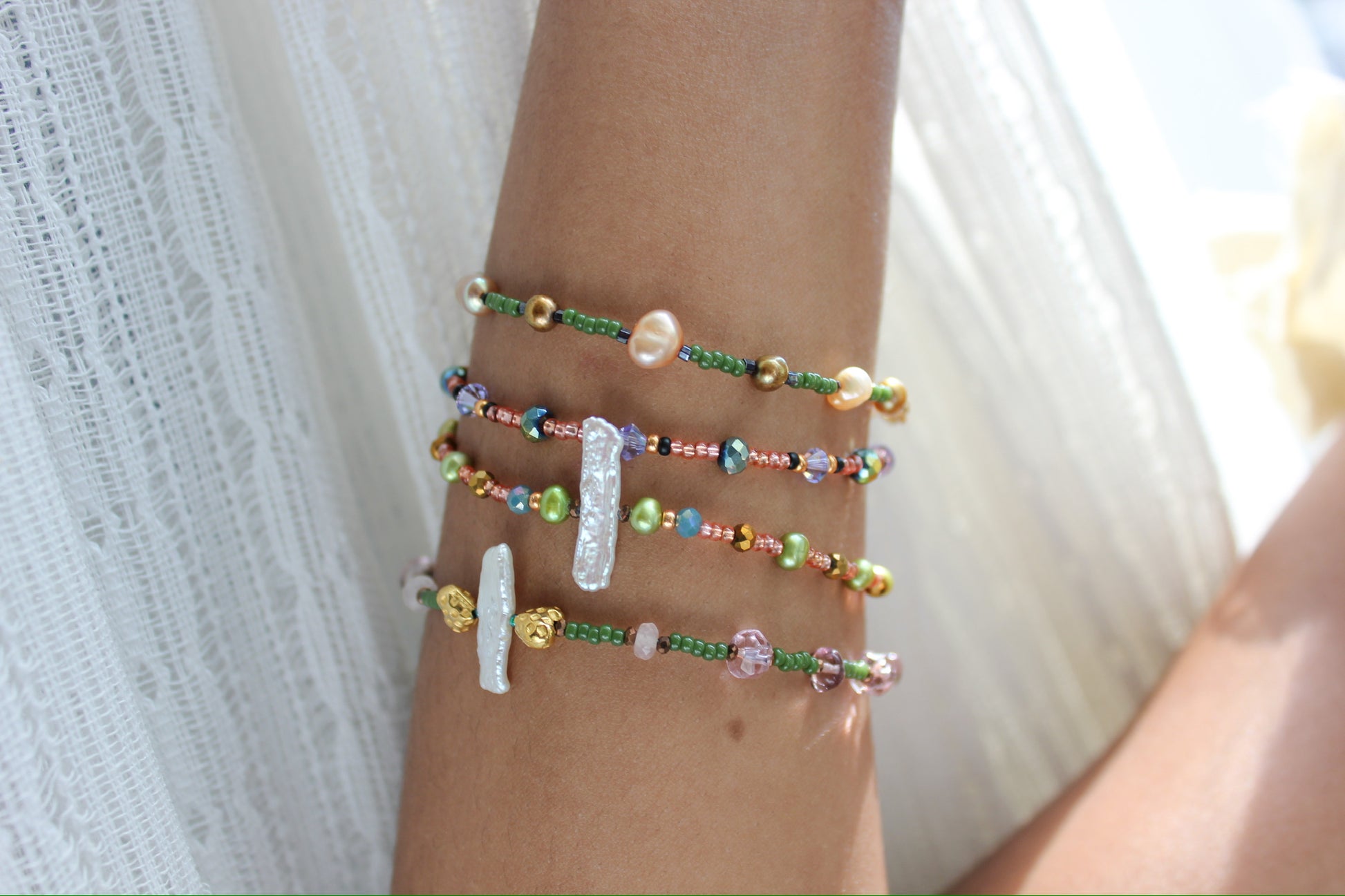 -Freshwater pearls and glass beads